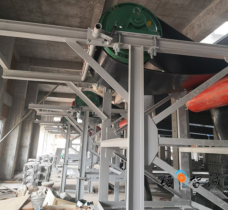 結構形式:有槽形膠帶輸送機、平型帶式輸送機、爬坡皮帶式輸送機、側傾皮帶輸送機、轉彎皮帶輸輸機等多種形式,輸送帶上還可增設推板、側擋板、裙邊等附件,能滿足各種工藝要求。